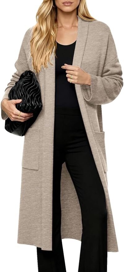 PRETTYGARDEN Long Sleeve Lapel Open Front Cardigan