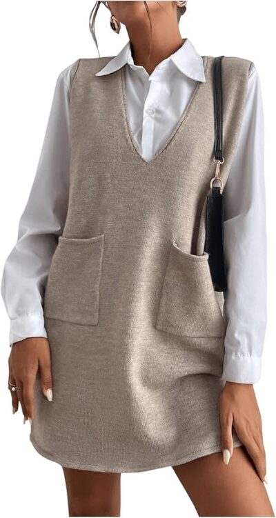 V neck sweater dress