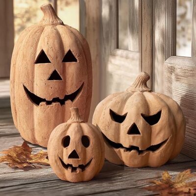 Handmade Terracotta Pumpkin Jack O’ Lantern Outdoor Indoor